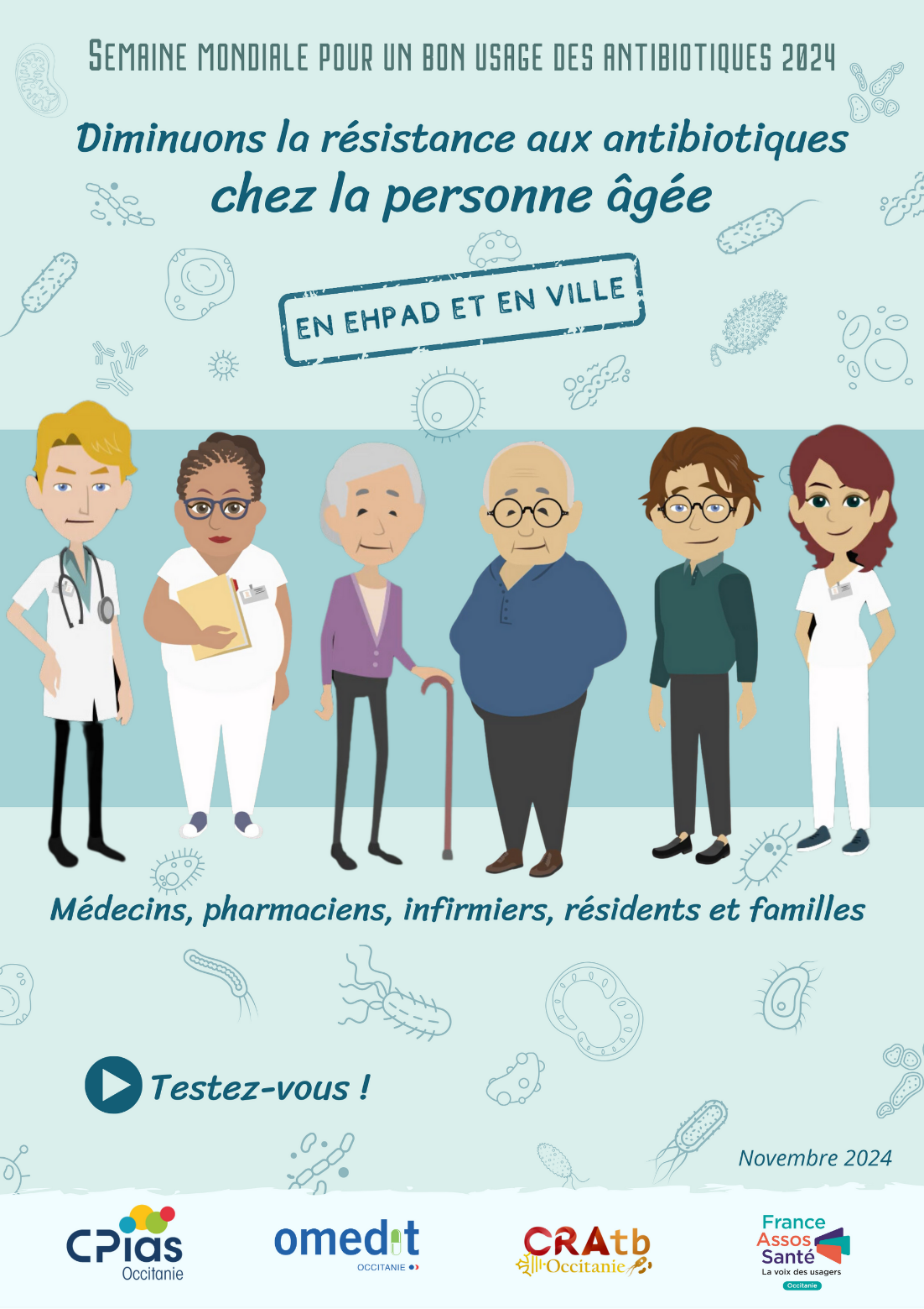 Pour les professionnels et usagers des EHPAD et des soins de ville : Diminuons la résistance aux antibiotiques chez la personne âgée !