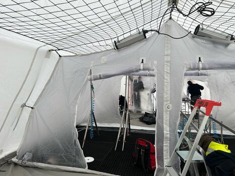 Sous la supervision du groupe des Situations sanitaires exceptionnelles (SSE), dirigé par le Docteur Margaux Chabannon et Thibaut Story (cadre de santé), l'infrastructure a été montée et démontée en un temps record. Cette simulation a impliqué la mise en place de la structure, de ses circuits hydrauliques, des groupes électrogènes, et du système de chauffage intérieur.