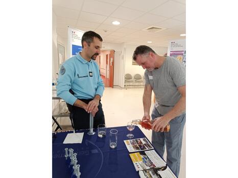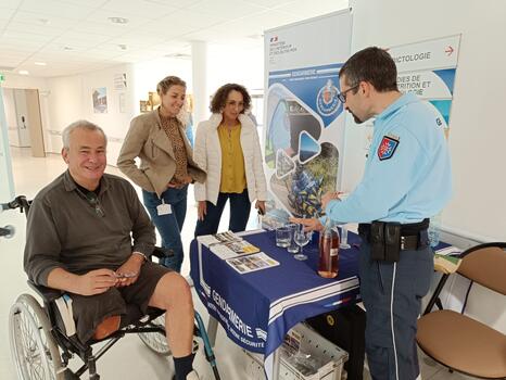 Le Capitaine Olivier Galon, Commandant l'Escadron Départemental de Sécurité Routière du Gard, s'est rendu disponible toute la journée ce mercredi 8 janvier afin d'attirer l'attention des patients et des professionnels de santé du CHU de Nîmes sur les dangers de la vitesse, de l'alcool, des substances illicites et notamment le protoxyde d'azote.