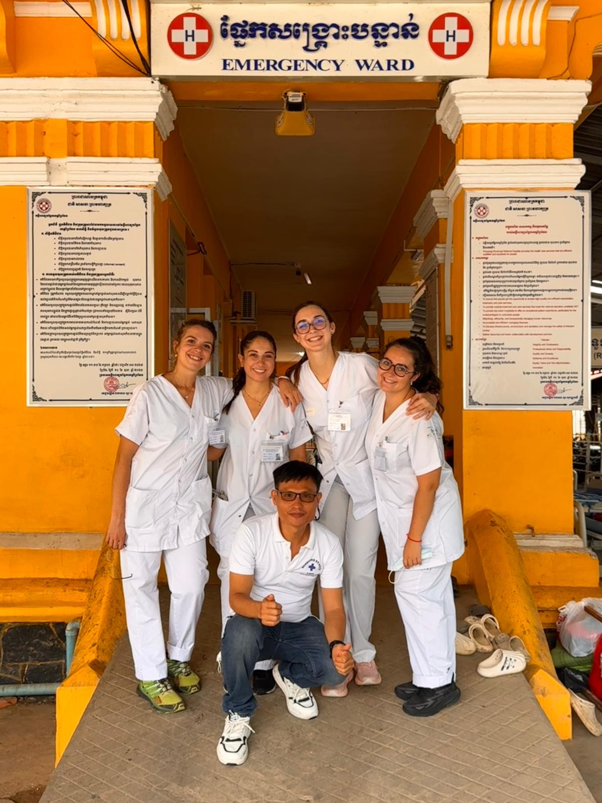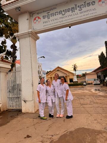Margaux BEAUBOIS, Mélissa DO COUTO, Julie GARCIA et Axel LASSAGNE, étudiants infirmiers en 3ᵉ année à l’IFMS du CHU de Nîmes, reviennent d’un stage de cinq semaines à l’hôpital provincial de Prey Veng, au Cambodge.