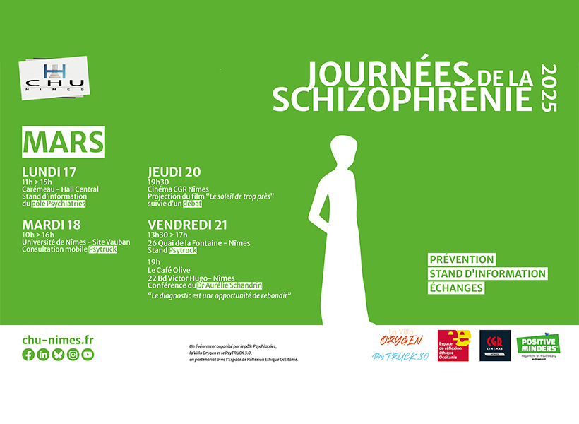 Le vendredi 21 mars à 19h, rendez-vous au Café Olive à Nîmes pour une conférence animée par le Dr Schandrin. À travers cette rencontre, elle abordera le diagnostic des troubles psychiques non comme une fatalité, mais comme une étape clé vers une meilleure prise en charge et une reconstruction personnelle. Un moment d’échange et de sensibilisation pour mieux comprendre l’impact du diagnostic et les perspectives qu’il ouvre en termes d’accompagnement et de résilience.