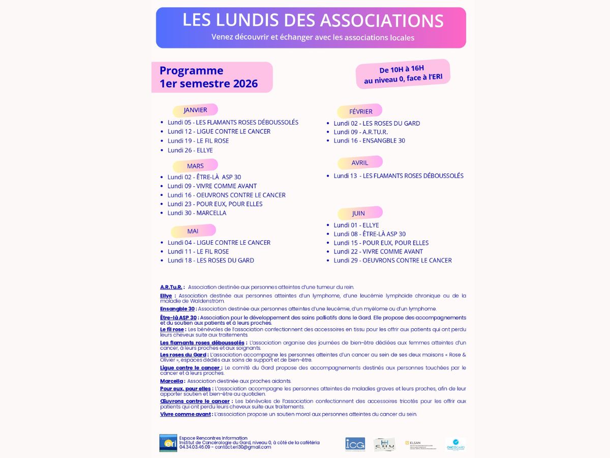 A partir de 2026, chaque lundi, une association liée à l'oncologie tiendra un stand d'échange et d'information à l'ICG.