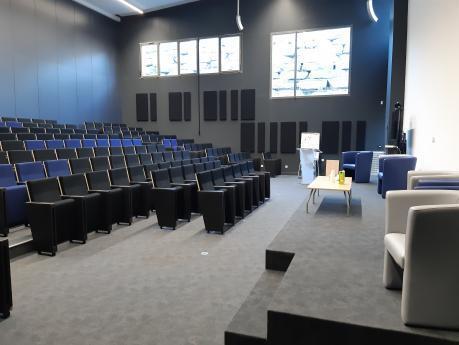 L’institut dispose de plusieurs amphithéâtres dont un de 400 places, de salles connectées, de halls process simulation disposant de plusieurs caméras connectées à l’ensemble des salles de cours pour un report d’images.