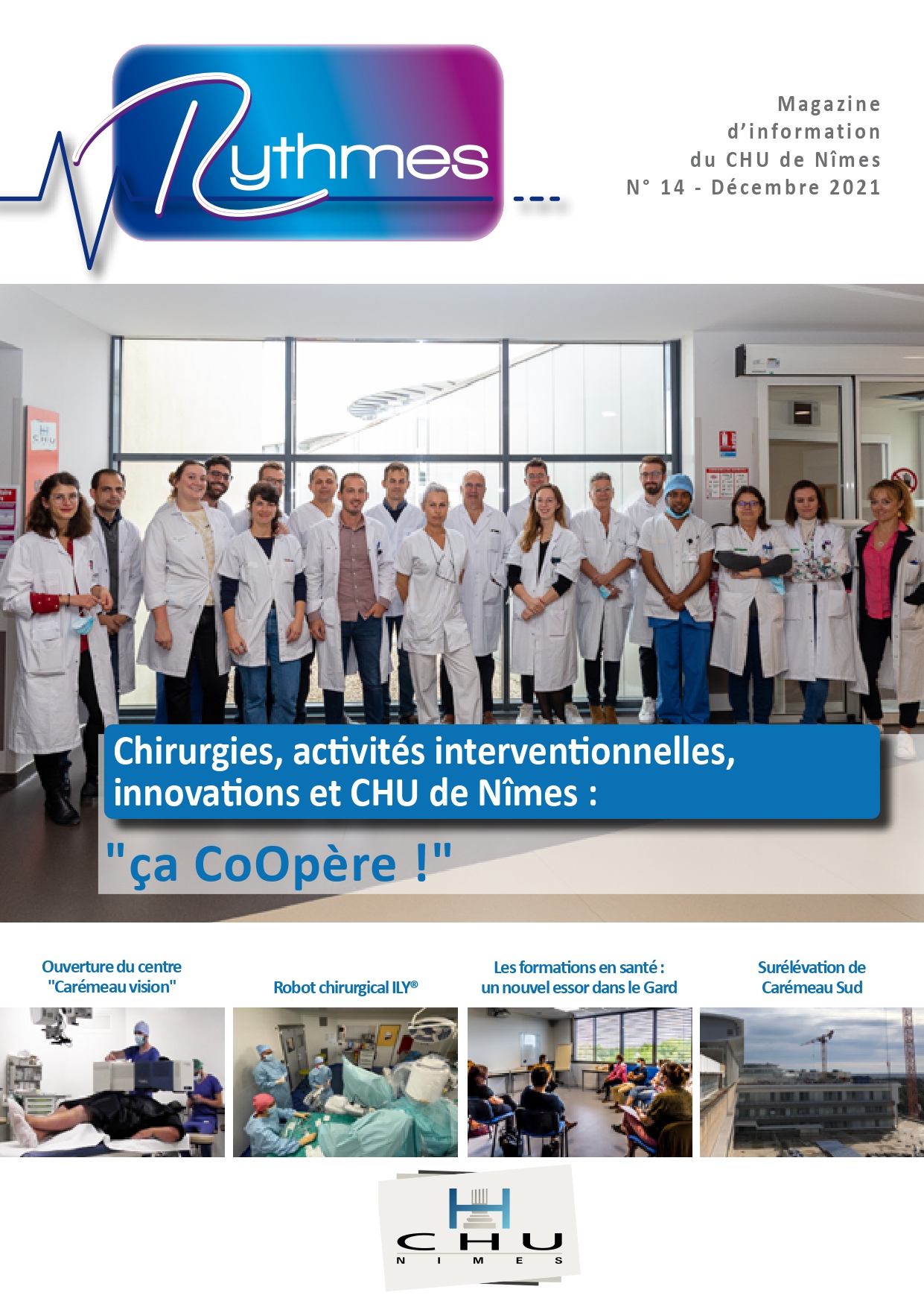 Rythmes N°14 Décembre 2021 Publié le 16.09.24 Rythmes n.14 pdf - 1.43 Mo Lire la publication À lire aussi Rythmes N°13 – Août 2021 Politiques sociales – L'humain au cœur du CHU Rythmes n.13 pdf - 2.19 Mo Lire la publication Rythmes N°12 – Janvier 2021 Édition spéciale COVID-19 2e vague Situation exceptionnelle - Le CHU dans la crise Rythmes n.12 pdf - 2.35 Mo Lire la publication